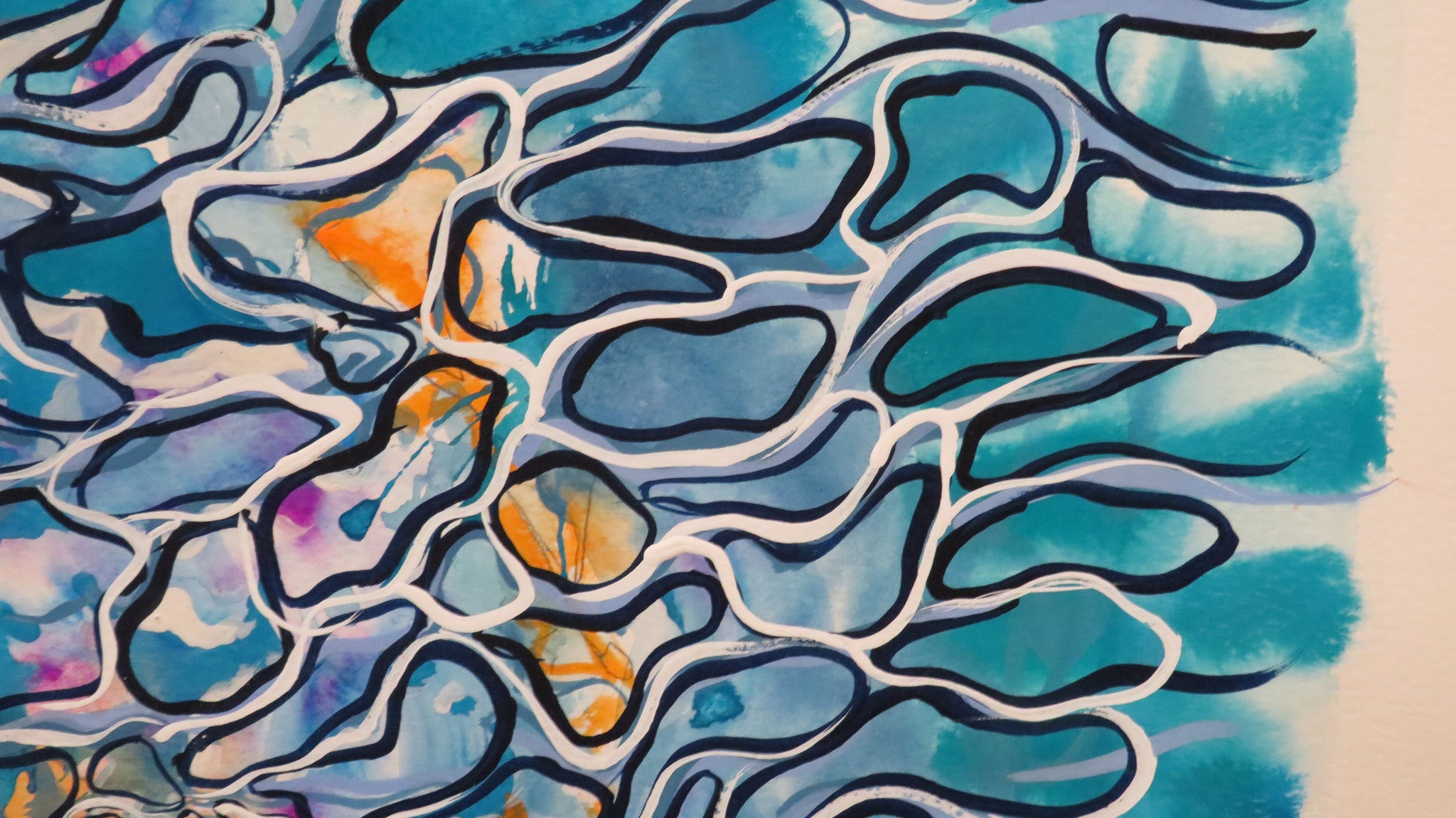 It is easy to look for a long time at this piece of art, to see how many layers Annie made, and to enjoy the variety in the visual pattern. The eyes can enjoy every corner of this artwork, even the edges, which maximize the texture of the paper and the quality of the paint. The process of painting is as beautiful as the final product, and with all of these layers, I'll bet this process was visual splendor.