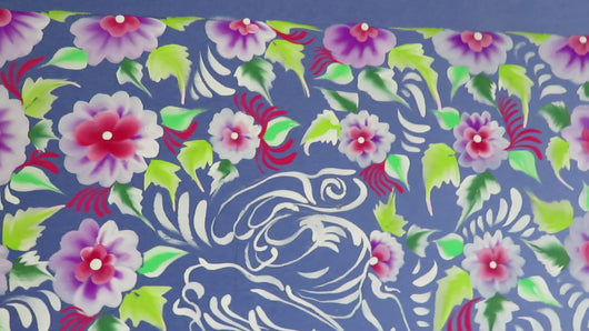 The bright paint colors are dreamy in their neon tones. In the course of painting 63 flowers by hand, each with multiple layers, what was the artist thinking? Did she stop thinking anything but the tools, colors and forms?