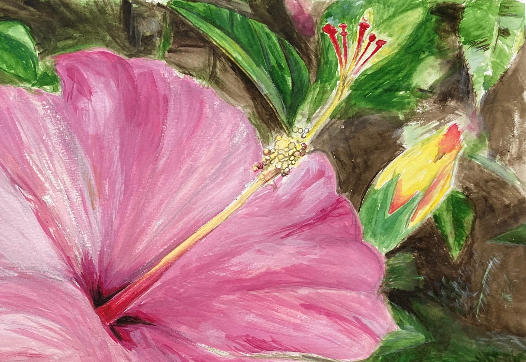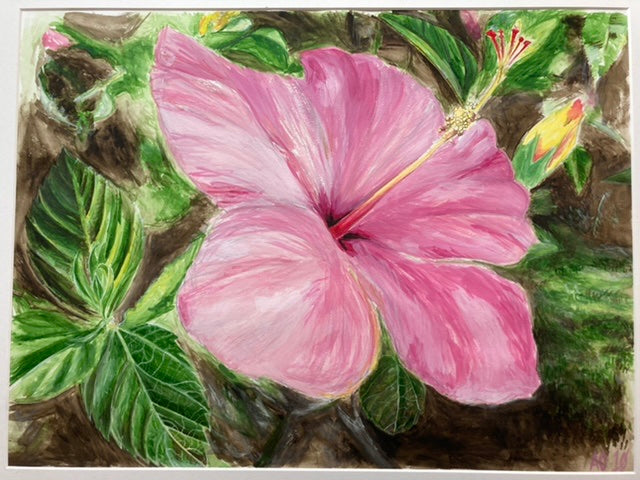 Pink Hibiscus watercolor - Original Watercolor 18x24 or Fine Art Prints